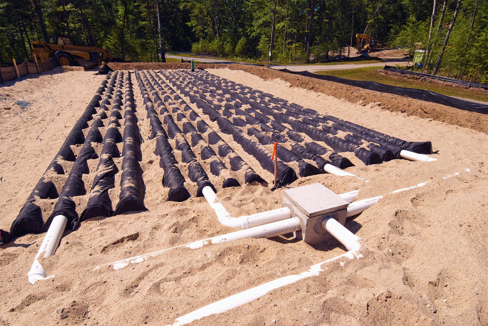 EVT fera les travaux de terrassement et tranchées nécessaire pour l’installation de canalisations afin de récupérer les eaux usées de votre propriété pour les amener à votre système de d’assainissement autonome.